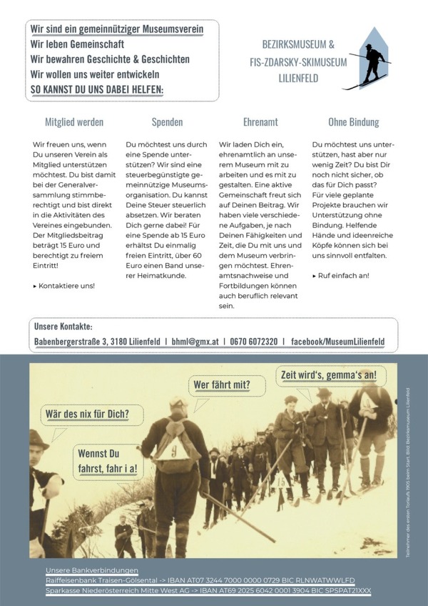 Folgen Sie unseren Inhalten auf Instagram (museum_lilienfeld) und Facebook (MuseumLilienfeld). Sonderprogramme werden outdoor angeboten (zB. Wanderungen und Kulturradtouren). Nehmen Sie bitte dazu mit uns Kontakt auf.