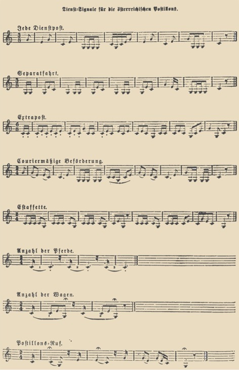 Dienstanweisung aus dem Jahr 1844, diese 8 Signale mußte jeder Postillion beherrschen).